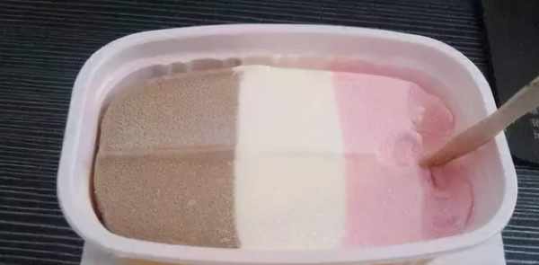 這種雪糕在我們小時候屬於一種高端雪糕,因為它是放在盒子裡面,而且裡面有三種不同的顏色,不同的顏色代表不同的口味,吃的時候拿一個小木勺,挖上一口放在嘴裡,滿滿的奶香味道,現在回想起來都是一種童年回憶。