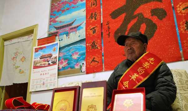 王大叔看到我們給老爺爺拍照片,便從傢裡拿出瞭老人傢的榮譽證章擺放在瞭桌子上,王爺爺也明白我們的目的,挺著腰板端坐在沙發上,隨後我們便和老人聊起瞭人生。“我出生在1921年,父母生下我們兄弟三人,我小時候曾經念過3年的小學,1935年日寇侵略到瞭華北,打到瞭垣曲殺人放火無惡不作,在村子裡殺瞭3個村民,我二哥也被打傷,後來我在堂哥和大哥的帶領下秘密參加瞭當地地下黨組織的抗日武裝,1945年參加瞭垣曲縣獨立團,從此跟在部隊開始瞭革命生涯,解放戰爭中參加過陽城,絳縣,襄汾,太原,夏縣戰鬥,過黃河解放瞭過靈寶,澠池,陜州,新安等地,隨軍南下打到瞭南京,杭州,湖北和廣州,在抗美援朝戰爭中當排長保衛濟南機場,後來又在第五航校和太原910部隊工作,1954年響應號召退伍返鄉回才到瞭老傢垣曲。”王爺爺講起自己的前半生軍旅生涯相當的清楚,看來老人傢的頭腦還是相當靈活,思維清晰。