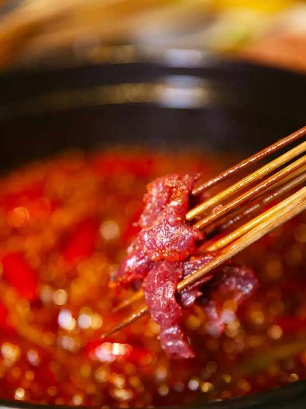 牛油紅鍋的勁辣和鹵汁的厚重在嘴裡勢均力敵地較量,香料的獨特口感觸發第三類味覺開關,嫩!滑!香!濃!