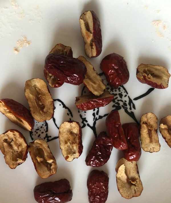 6、將紅棗洗幹凈之後對半切開,然後將裡面的棗核取出來。