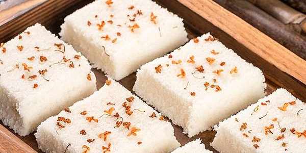 尤其是桂花糕,桂花糕的原料主要是桂花和糯米粉,原料非常的簡單健康,糯米粉和桂花都是很好消化的食物,並且營養價值很高,非常適合中老年人。