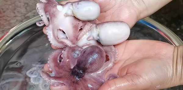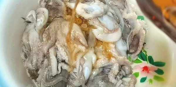 八爪魚買回來以後,很多人簡單一洗就下鍋煮瞭,其實這是錯誤的,因為八爪魚身上有很多黏液,是腥氣的來源,八爪魚在爬行的時候,洗盤上有很多臟東西,我們一定要加點鹽,鹽不但可以入味,還能殺菌,加點料酒去腥,加適量醋,醋能讓煮出來的八爪魚更脆爽,然後搓洗一會,直到搓出八爪魚的黏液,搓洗的時候,八爪魚的吸盤一定要用心點,這樣能徹底清除八爪魚身上的臟東西,吃起來才不腥氣。