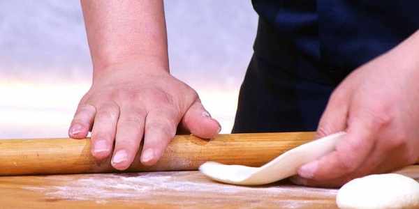 提前做一份發面,搟成面皮。將面皮放入小碗中,面皮中加入焯過水的敗醬草、雞蛋和蝦仁,封口包成包子