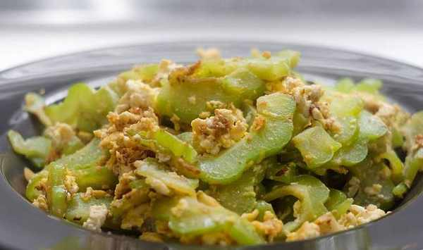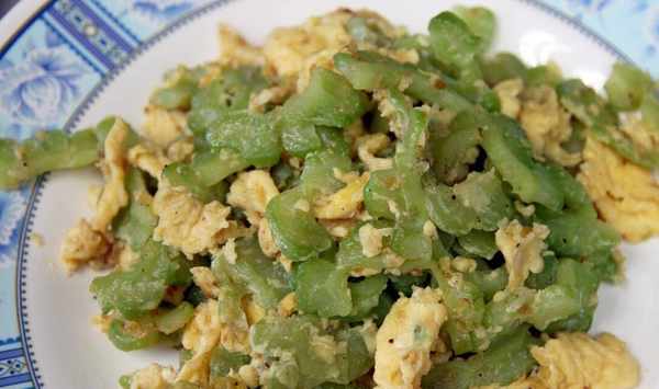 【炒苦瓜】用料:雞蛋、苦瓜、食鹽、油