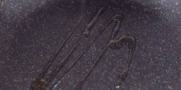 鍋中刷油,倒入攪拌好的面糊。想要做成高顏值的餅狀,一定要註意,這裡的糊糊要盡量鋪的平整。如果不平整的話,可以攤平之後再開火。