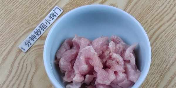 第二步,就是醃制瘦肉,肉絲切好瞭之後,我們把它裝到碗裡面,在裡面加入少量的料酒,加入料酒可以起到去腥的作用,倒入一些食用鹽,少量的胡椒粉,胡椒粉不但能夠提味,也可以起到去腥的作用。然後帶上一次性手套抓拌一會,讓裡面的瘦肉能夠入一些底味。