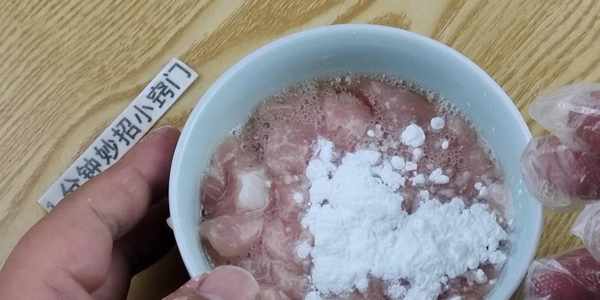 抓拌好瞭之後,然後我們在裡面倒入適量的淀粉,抓拌均勻,倒入淀粉抓拌,能夠鎖住肉絲裡面的水分,這樣我們在炒瘦肉時,瘦肉裡面的水分就不會流失的太多,而且還可以鎖住瘦肉裡面的底味。
