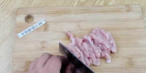 豬身上比較好吃的瘦肉是裡脊肉,它的價格居高不下,在我們這邊比排骨的價格還要貴,所以炒瘦肉,我們要首選裡脊肉。炒瘦肉時,要多加2步,第一步是切瘦肉的技巧,我們拿一塊清洗幹凈的裡脊肉過來,把裡脊肉切成一片一片的,厚度差不多兩毫米左右就可以瞭。接著我們把豬肉片切成肉絲狀,不用切得太細瞭,如果切得太細,就會影響到炒出來的口感。