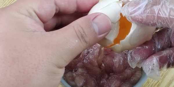 接著我們拿一個雞蛋過來,把裡面的雞蛋清過濾出來,倒在碗裡面,再次抓拌均勻,加入雞蛋清抓拌,能夠使肉絲更加嫩滑,而且還可以在肉絲表面形成一層保護膜,使瘦肉更加順滑。
