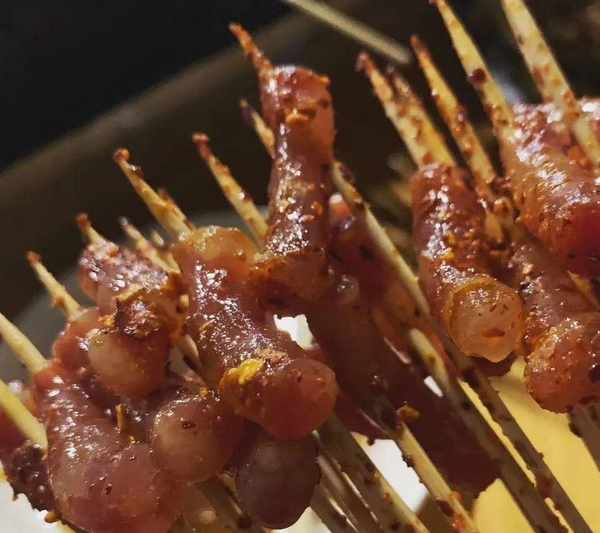 豬天堂、豬鼻筋、雞屁股都是宜賓燒烤的經典菜品。我的宜賓朋友@南南君說,小時候燉雞燒雞都不吃雞屁股,結果人生第一次吃雞屁股,就獻給瞭燒烤。