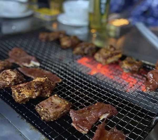 對於燒烤來說,炭火太重要瞭,有的商傢甚至還會悄咪咪在電、氣爐子裡面夾兩塊炭,與其說這是頂風作案,不如說這是樂山人在燒烤這件事上體現的執拗和底線。