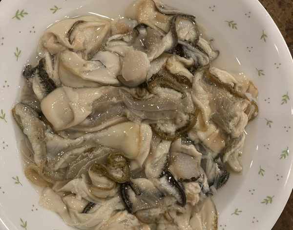 1. 牡蠣洗幹凈,撬出肉,然後加點生粉,把它洗幹凈,清洗的時候要輕一點,不要把它洗破。
