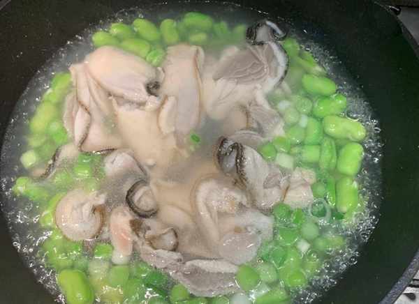 準備食材:生蠔、蠶豆、豆腐、蔥花、油、鹽、胡椒粉