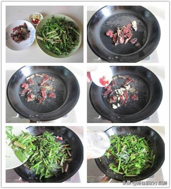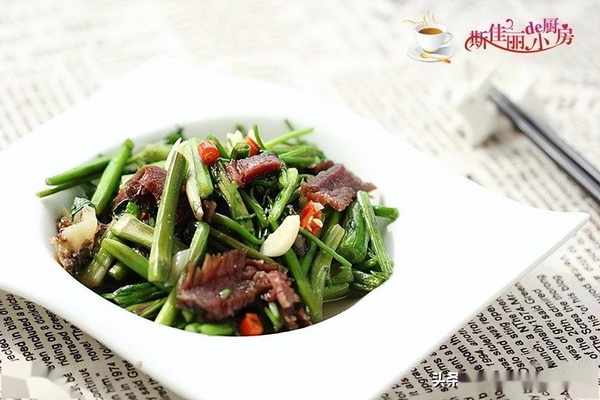 原料:水芹菜 臘肉 蒜 紅辣椒 油鹽