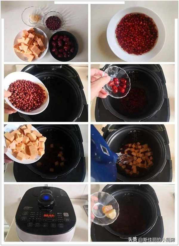 制作:提前將紅豆用冷水浸泡一個晚上; 將泡好的紅豆放入電壓力鍋中;加入免洗紅棗,紅薯去皮後切成小塊放入電壓力鍋中, 一次性加入足量的水; 7. 按下壓力鍋上燉煮豆類的功能鍵; 時間到, “紅棗番薯紅豆湯”就燉好瞭, 按個人喜歡加入冰糖融化即可。