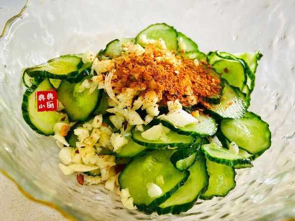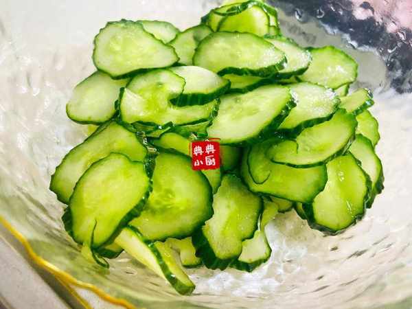 黃瓜洗幹凈之後切成薄片,加一點鹽醃制兩個小時左右。我一般中午吃的話,就早上買好菜回來就把黃瓜切好醃制上瞭。