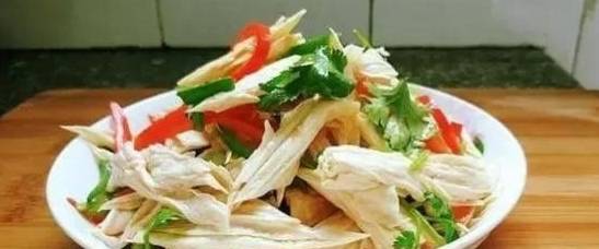 1、雞胸肉加2片薑跟蔥段熱水煮熟10分鐘,撕成絲備用。