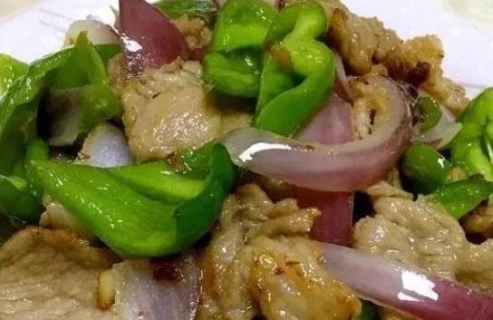 5,炒肉植物油放的比較少一些瞭。油熱瞭,大蒜片爆鍋出香味就可以瞭。火不要開得太大瞭,中火炒菜咯。肉片下鍋一定要快速的翻炒,鍋熱肉也不會粘鍋底。如果鍋不熱肉就會沾鍋底。