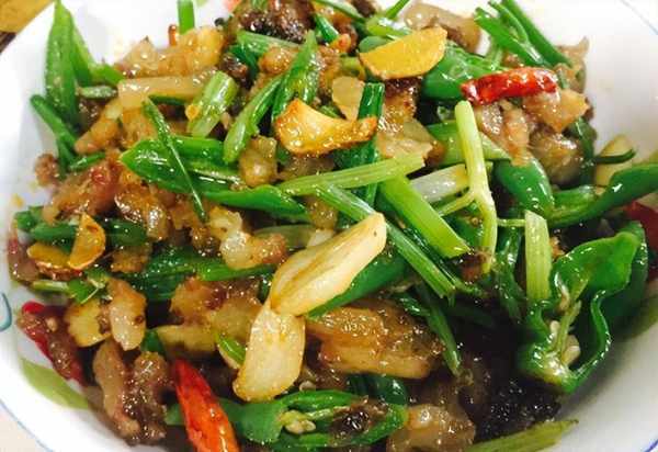 準備食材:牛筋、芹菜、幹紅辣椒、青辣椒、蒜、薑、料酒、雞精、十三香、生抽
