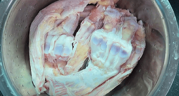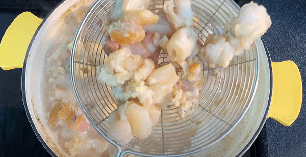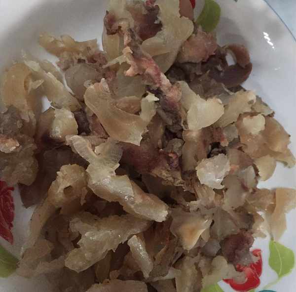 1. 這個牛蹄筋很容易沾一些牛毛、臟的東西,所以加一點生粉,把它抓拌兩遍,再用清水沖洗幾遍,把它沖洗幹凈就行。