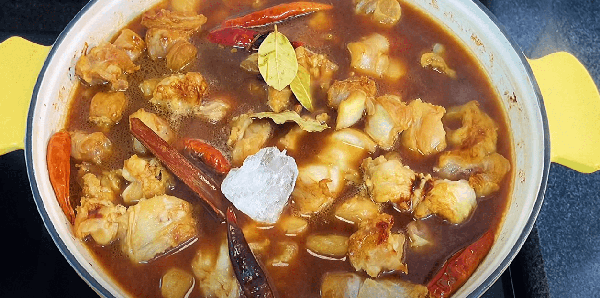 4.然後加適上清水,一個桂皮,兩個香葉,一個八角,再來一塊冰糖,大火煮開後調小火煲兩個半小時,如果嫌時間長的話呢,就在高壓鍋壓40分鐘,就會更簡單省事。