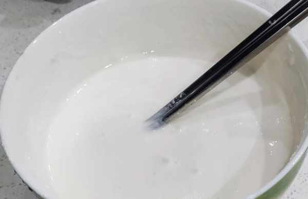 捻一小撮黑木耳,熱水泡發。接著開始調面。冷水和面,喜歡吃硬點的,少放些水,面調稠點,我一般是調成糊狀。可以在面裡少放些鹽,這樣疙瘩更有味。