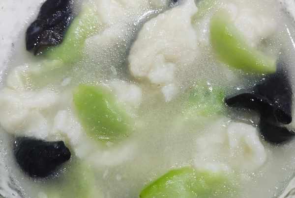 絲瓜做湯本就鮮,加瞭面疙瘩,湯汁稠滑有味,疙瘩軟爛又稍有嚼勁。一大碗吃個精光,然後發現吃撐瞭。