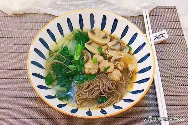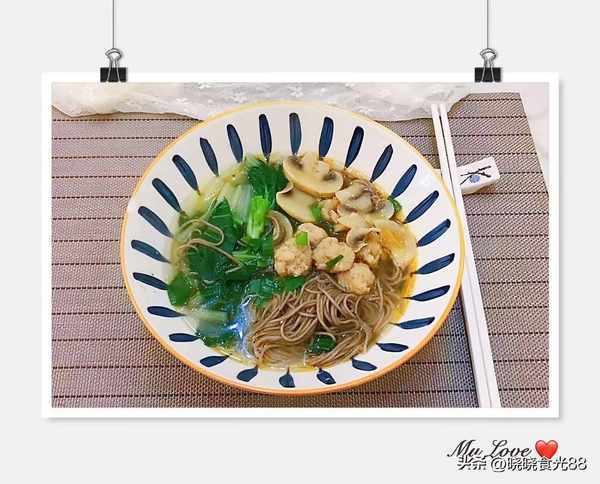 晚餐:口蘑小白菜丸子湯煮蕎麥面。