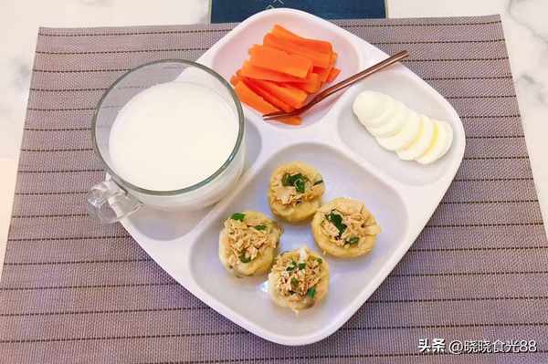 早餐:玉米面窩窩頭、涼拌豆腐皮、水煮胡蘿卜條、雞蛋。