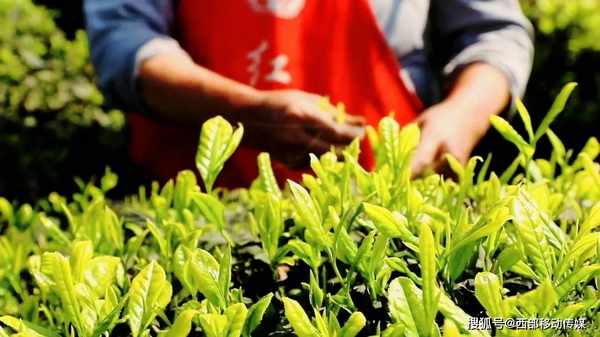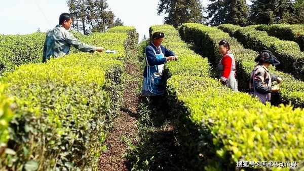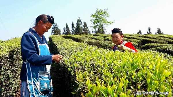 透過一排排茶樹叢,苗傢人一邊高唱苗族山歌一邊熟練地采摘著新鮮茶葉,以表達豐收的喜悅之情。