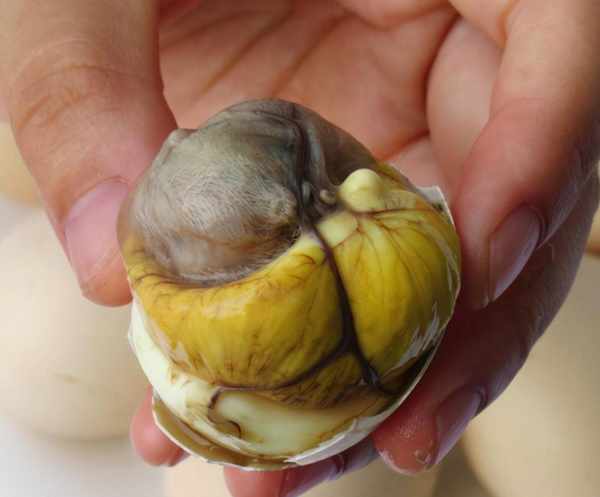 這個小吃還有另外一個名字叫做活珠子,其實在很多城市小吃街都可以看到有賣這個小吃的,他是沒有孵化成的小雞,用來煮著吃或者是做成燒烤,都比較美味,營養價值特別高,隻不過很多人看到這個東西都表示害怕,更是難以下口。