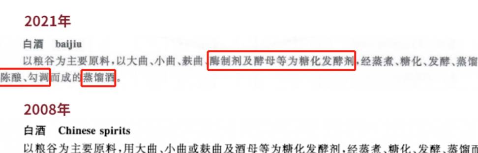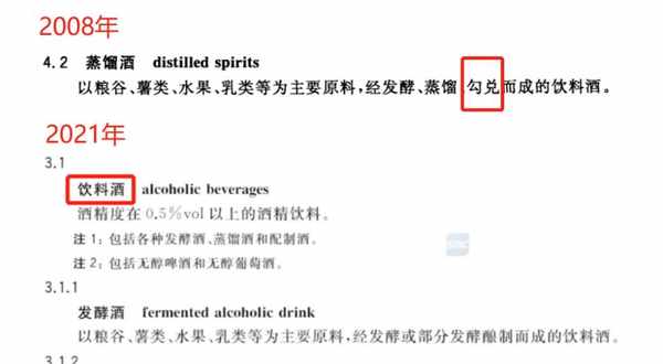 修改瞭“蒸餾酒”的定義,明確蒸餾酒不能是勾兌的,也就是白酒不能勾兌瞭,必須是陳釀、勾調的。