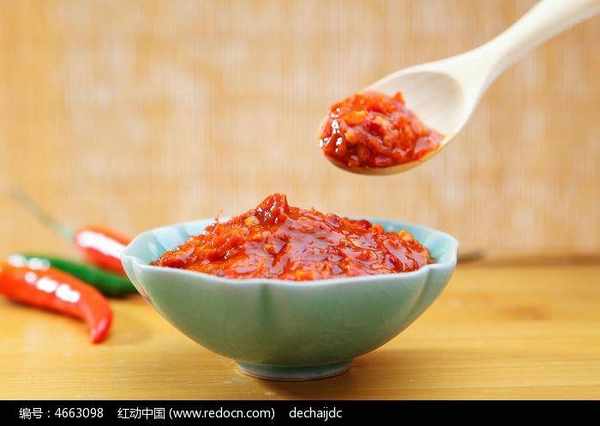 將辣椒徹底洗凈,控制水分含量。想辦法把辣椒壓碎,放入鍋中,加入精鹽、豆瓣醬、糖、醋和味精,攪拌至沸騰。等到完全涼瞭,把它倒進盆裡,加入蒜末,攪拌均勻,就可以吃瞭。