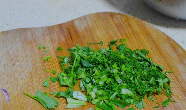 香菜洗凈切碎。