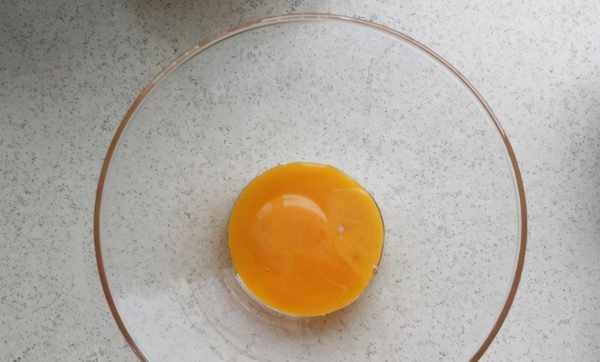 8、兩個雞蛋蛋清分離,把蛋黃放在碗裡備用。