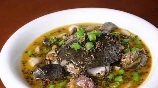 1、把土甲魚宰殺治凈並剁成塊,然後下入加有薑蔥的沸水鍋裡,汆一水後撈出。2.炒鍋放香料油燒熱,下薑片、蒜片、蔥節和花椒熗鍋以後,才倒入甲魚塊稍炒,邊炒邊放胡椒粉、豆豉、豆瓣醬,並摻適量的清水燜燒5分鐘至入味,再下青紅辣椒節續燒至香味濃鬱,裝盤便上桌。
