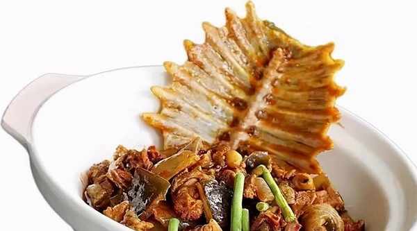 制作:1.把甲魚宰殺治凈,斬成塊納盆,加入白酒、胡椒粉、蒸魚豉油和濕淀粉一起拌勻,醃漬30分鐘待用。2.鍋裡放色拉油燒至七成熱,投入甲魚塊炸至顏色變黃時,撈起來瀝油,隨後放沸水鍋裡汆一水待用。3.鍋裡放化豬油和香料油燒熱,等下入甲魚塊、炸蒜瓣、薑片、野山椒、青椒節和紅小米辣節炒香以後,放甜面醬、辣椒醬、排骨醬和沙嗲醬炒勻,稍後加入美極鮮醬油和蒸魚豉油,待淋入花椒油便出鍋裝盤,另外點綴些蔥絲便好。