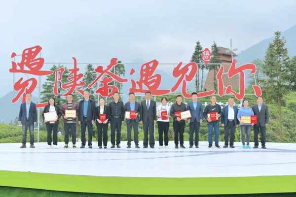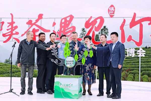 陜西省農業農村廳黨組成員、副廳長王韜,陜西省商務廳副廳長郭紹敏,中國農科院茶葉研究所原副所長魯成銀,漢中市委常委、副市長郭裡, 漢中市農業農村局局長張保平,鎮巴縣委書記韓雄,鎮巴縣委副書記、縣長賈曉偉,陜西省茶業協會會長紀曉明共同點亮陜茶品牌之樹。