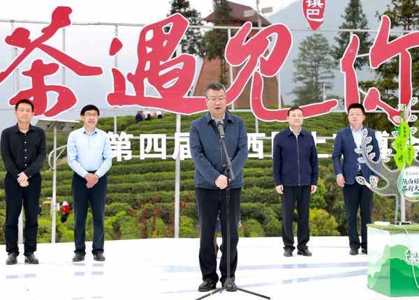 省農業農村廳黨組成員、副廳長王韜宣佈第四屆陜西網上茶博會啟動,省商務廳副廳長郭紹敏為陜茶探訪團授旗。與會領導嘉賓共同舉杯敬世界一杯陜西好茶,為鎮巴毛尖代言,為陜茶點贊。