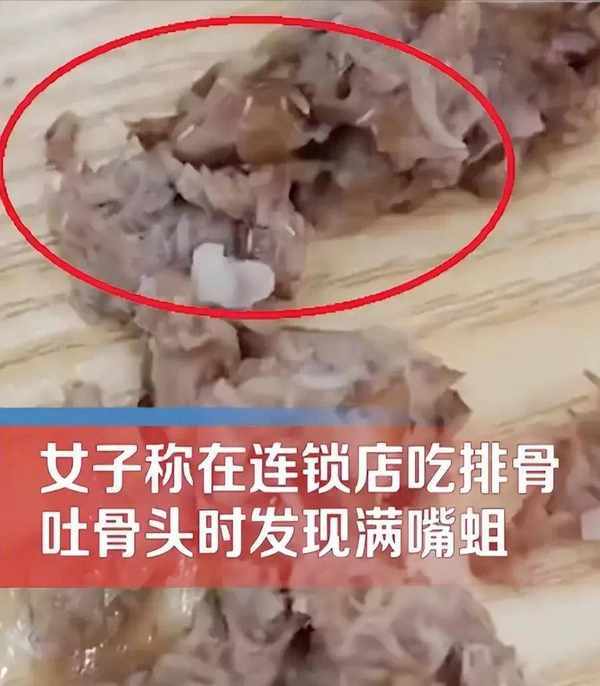 真的是太惡心瞭!吃的排骨裡發現滿嘴是蛆,這讓人心有餘悸,不知要嘔吐多少天。