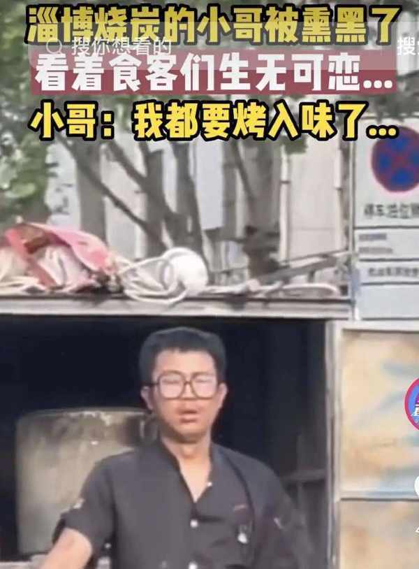 燒烤小哥連軸轉工作,臉被熏成瞭包青天;