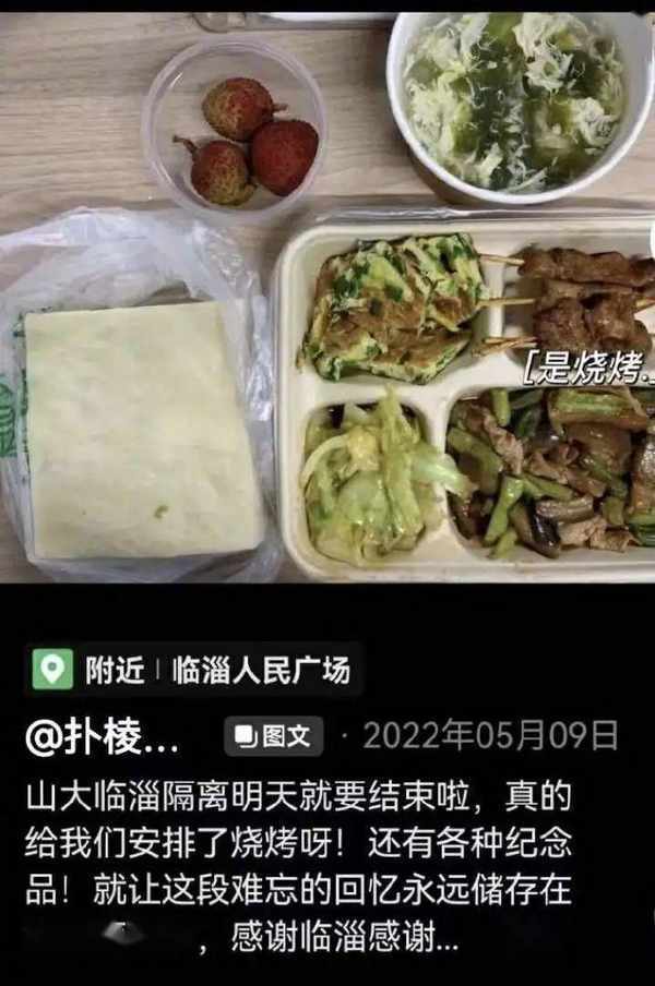 當時淄博給大學生們吃好喝好招待好,讓被困在隔離點的大學生們不至於那麼難受。