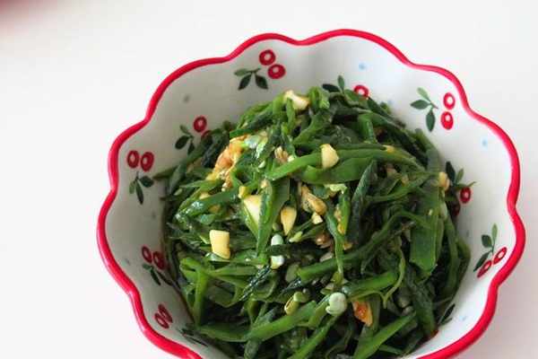 具體做法:梅豆放水中浸泡一會兒,洗幹凈後摘去兩邊的筋;鍋中燒開水,水中撒些鹽和幾滴油,把梅豆倒入汆燙變軟熟透;撈出來放在盤中平鋪開晾涼;然後放在案板上斜著切成細絲;大蒜切成末;碗中倒入白糖、鹽、生抽和蠔油拌至糖和鹽融化調成碗汁;把梅豆絲和大蒜末放入碗中,倒入香油和碗汁拌勻即可。