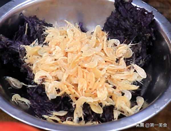 1.準備適量的海藻,將其掰成小塊。將其放入碗中,然後抓一小把蝦,將其浸泡在幹凈的水中,以去除雜質和多餘的鹽。