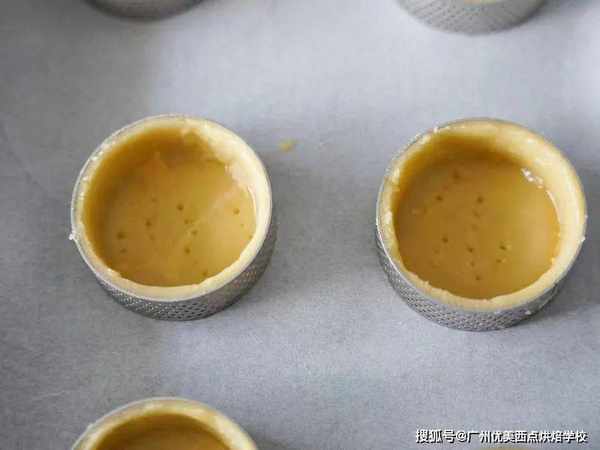 10、表面刷蛋黃液 冰箱冷凍至撻殼變硬,底部紮孔,烤箱預熱至175度12分鐘