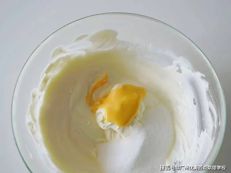 13、加入蛋黃和細砂糖,蛋黃可以用可生食的,或者蛋黃隔水加熱至80度,不斷攪拌防止變成雞蛋花