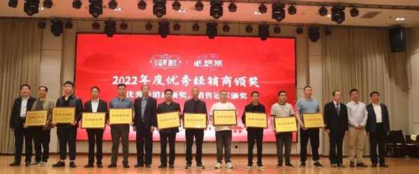 此外,答謝會還對2022年度優秀經銷商、銷售冠軍進行瞭表彰,安森曼酒莊董事長魏根全先生、總經理李軍富先生為獲獎的優秀經銷商進行瞭頒獎。