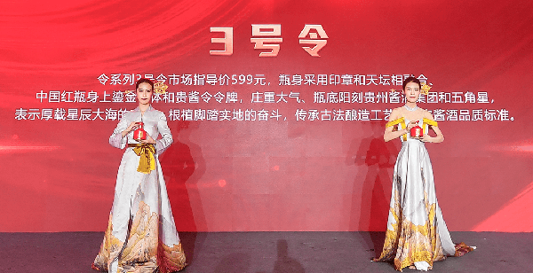 貴醬令“令”系列3號令定位600元次高端,產品瓶身采用印章和天壇相融合、中國紅瓶身上鎏金字體和貴醬令虎型令牌,莊重大氣;瓶底陽刻貴州醬酒集團和五角星,表示厚載星辰大海的理想,根植腳踏實地的奮鬥,傳承古法釀造工藝,堅守醬酒品質標準。