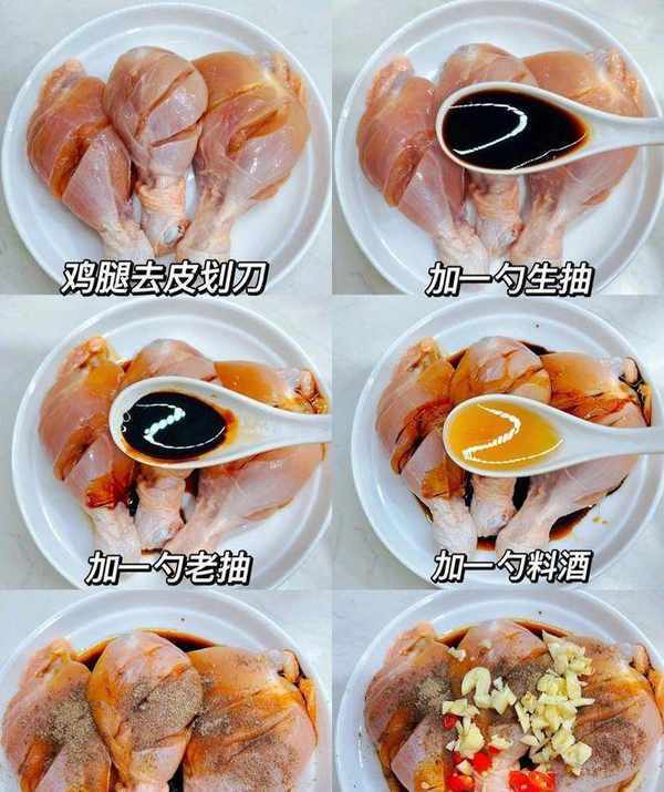 在醃制的過程中,可以多用手搓揉雞腿,這樣可以使得醃料更加均勻地分佈在雞腿上。