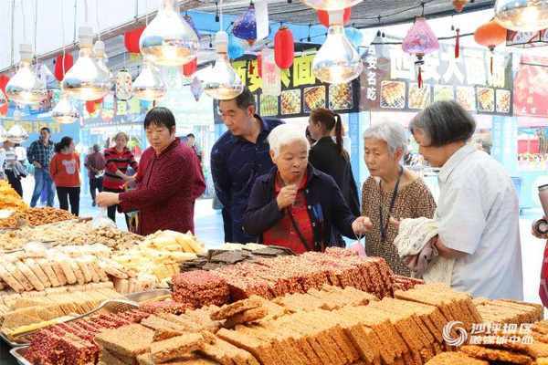 上午10點,陳傢橋街道學府廣場人頭攢動,美食消費購物節展銷活動現場,幹雜品、服裝、鞋帽箱包、傢電……值得一提的是,各個攤位的美食小吃“俘獲”瞭許多市民的“心”——重慶小面、酸辣粉、 麻辣燙,還有花生酥、龍眼幹、牛肉幹、貓耳朵、核桃、幹果……美食小吃攤位前擠滿瞭許多前來購買的市民。